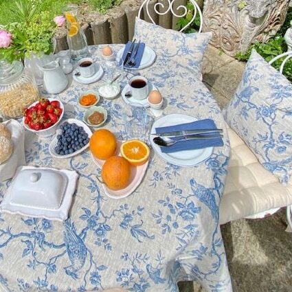 Durch den wunderschönen Druck auf Leinen verwandelt sich jeder Tisch im Handumdrehen in einen eleganten Blickfang mit französischem Flair. Deine Decke ist schon vorgewaschen, sie läuft daher ganz sicher nicht mehr ein und du kannst sie sofort nutzen.